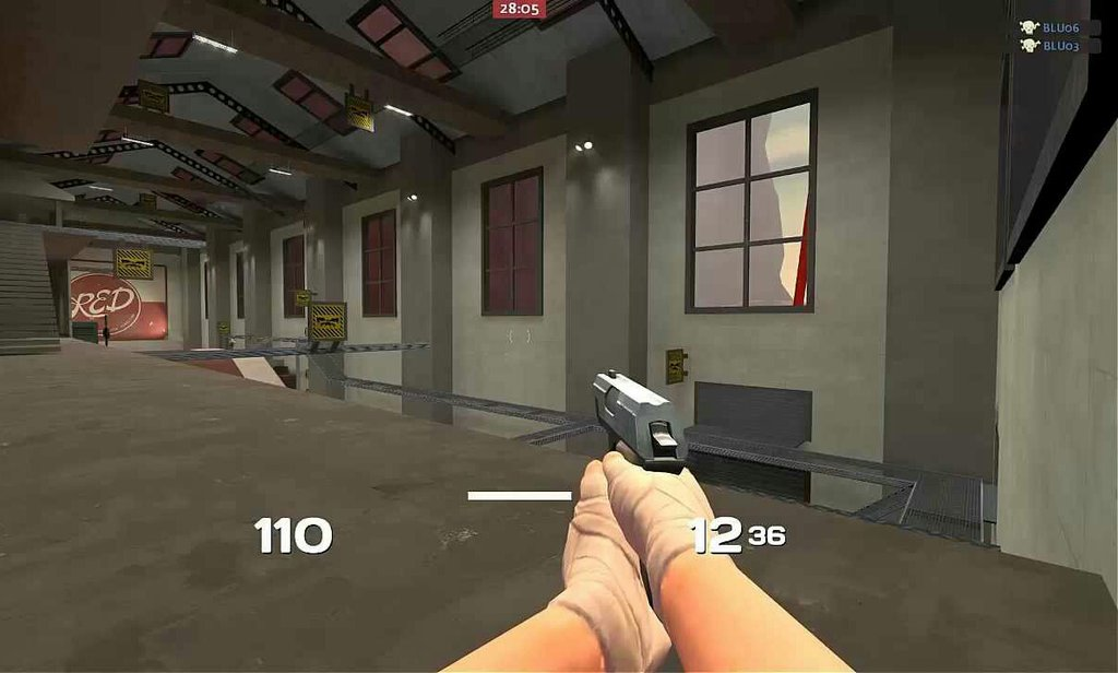 This is The Scout’s primary weapon and the one that he uses the most in cutscenes. The Scattergun is a short, double-barreled lever-action shotgun that carries 32 shells in total, and can shoot six times before needing to be reloaded. Every shot fires ten pellets. What makes the Scattergun so powerful is its close range useability as closer range means more of those deadly pellets going into the target. The Scattergun is okay at medium range but it not very effective at long range.