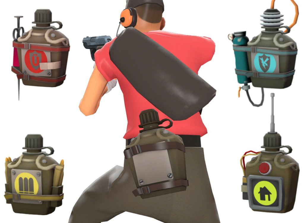 This is a tool used in Mannpower Mode. This is a grappling hook (no shit) that travels long distances and latches onto various surfaces such as walls or ceilings. It is very effective for the Scout if he wants to travel along the map faster and get to places that he wouldn’t normally be able to get on his own. It can also be used against enemies, as he can impale them using the grappling hook and if hit by the grappling hook they will suffer bleed damage until they are released.