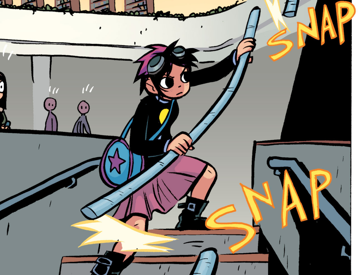 Although more of a design choice and because the story takes place in Canada, Ramona has roller skates that can get her places faster and goggles that protect her eyes from snow. (She also totally looks like she could be a part of the Jet Set Radio cast BTW)