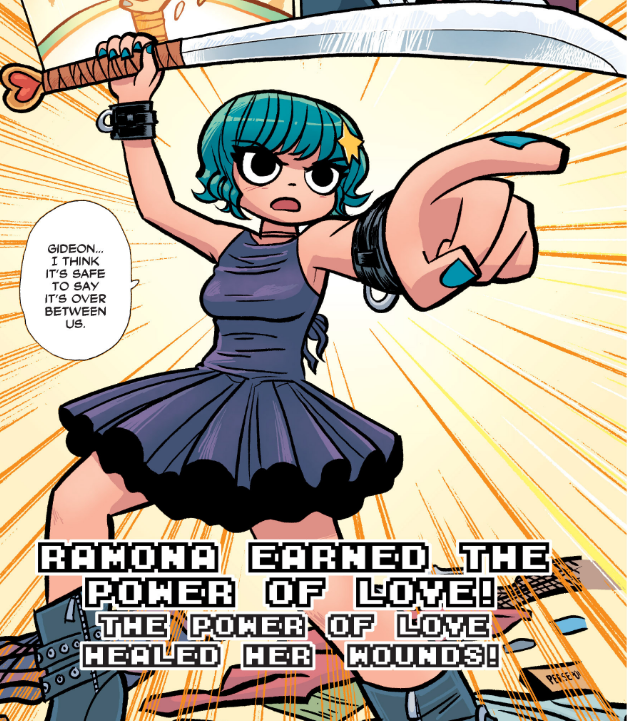 Ramona once gained the Power of Love in order to heal her wounds after being impaled with it by Gideon. With her wielding her own Power of Love, and Scott wielding the Power of Understanding, they were able to beat Gideon Graves and begin dating with no worries. The Power of Love’s bonuses are listed as Guts +2, Heart +3, Smarts +1, and Will +1.