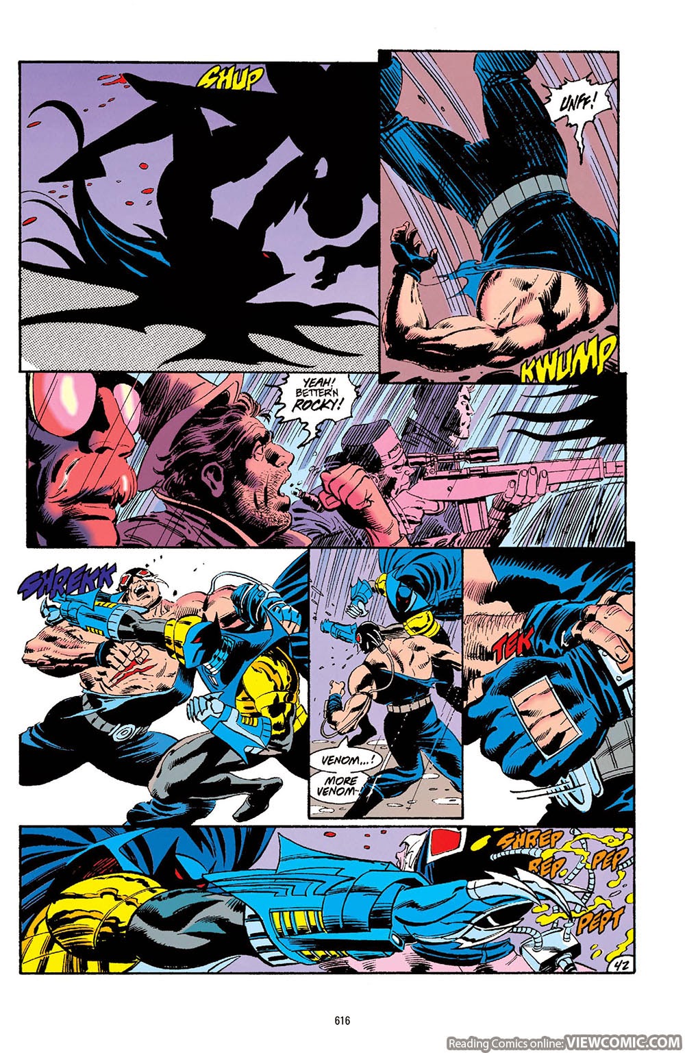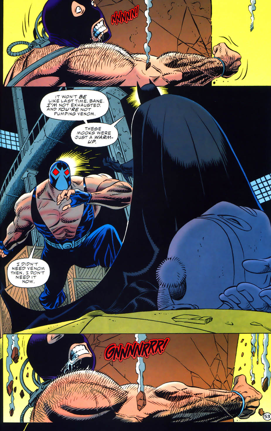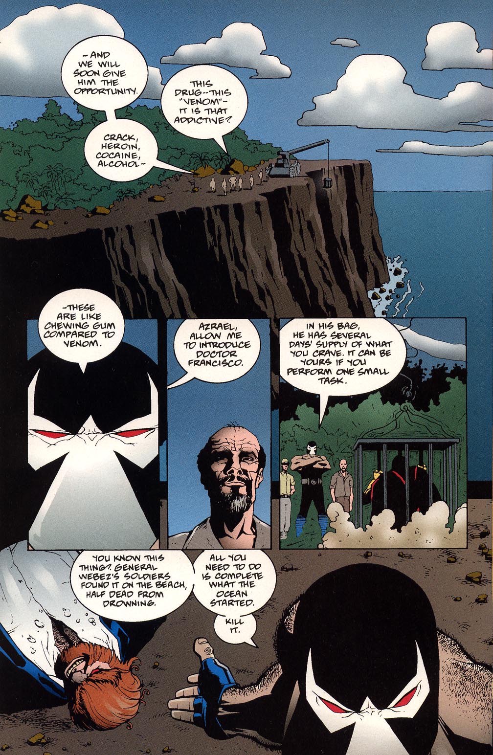 - Broke Killer Croc’s arms. Keeps up with Jean Paul Valley Batman while on Venom. But is forced to retreat when his supply is cut off.