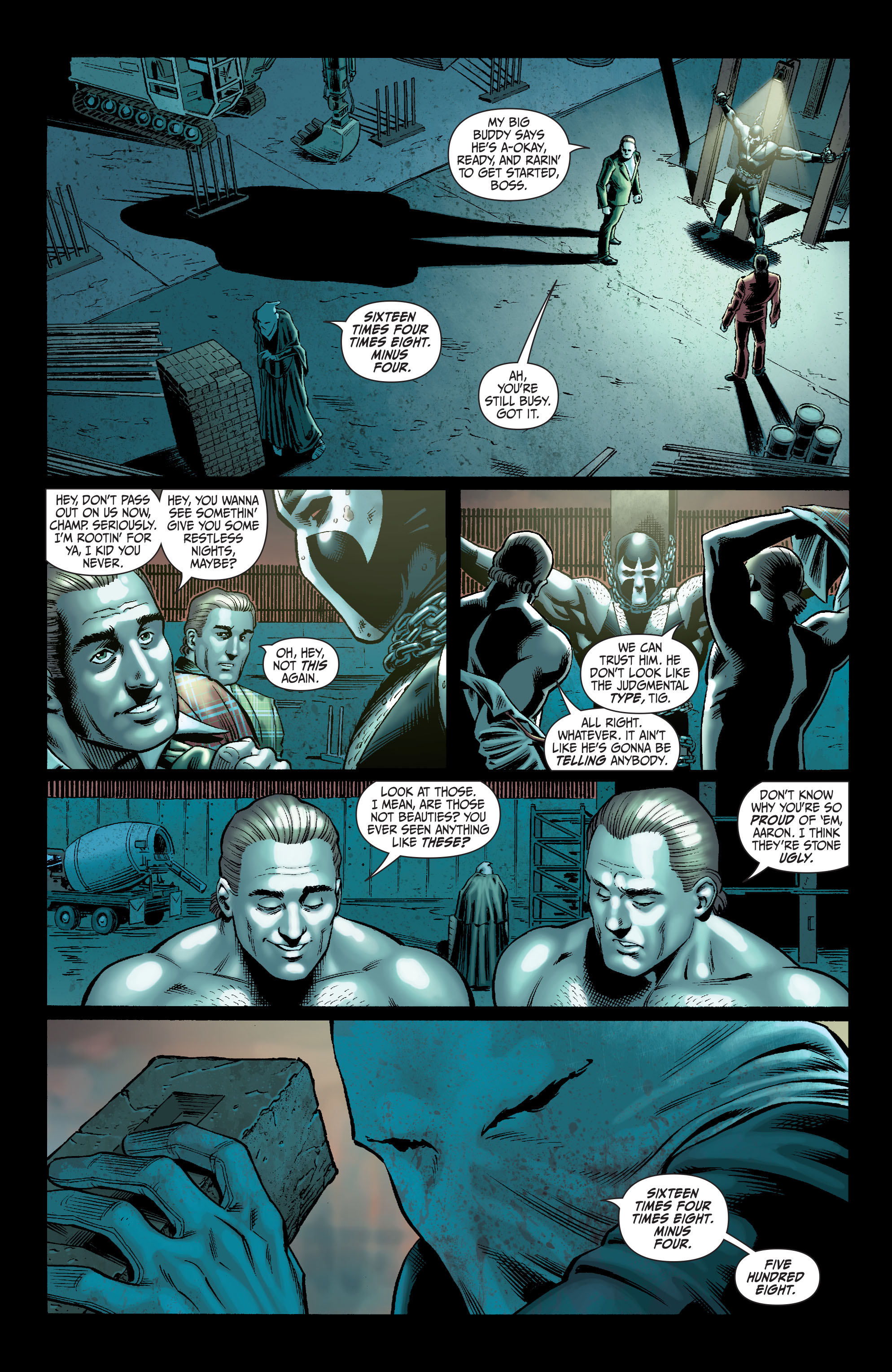 - Fights Batman and the Joker at the same time, breaking Joker’s arm and making Batman have to break a knuckle to beat him.