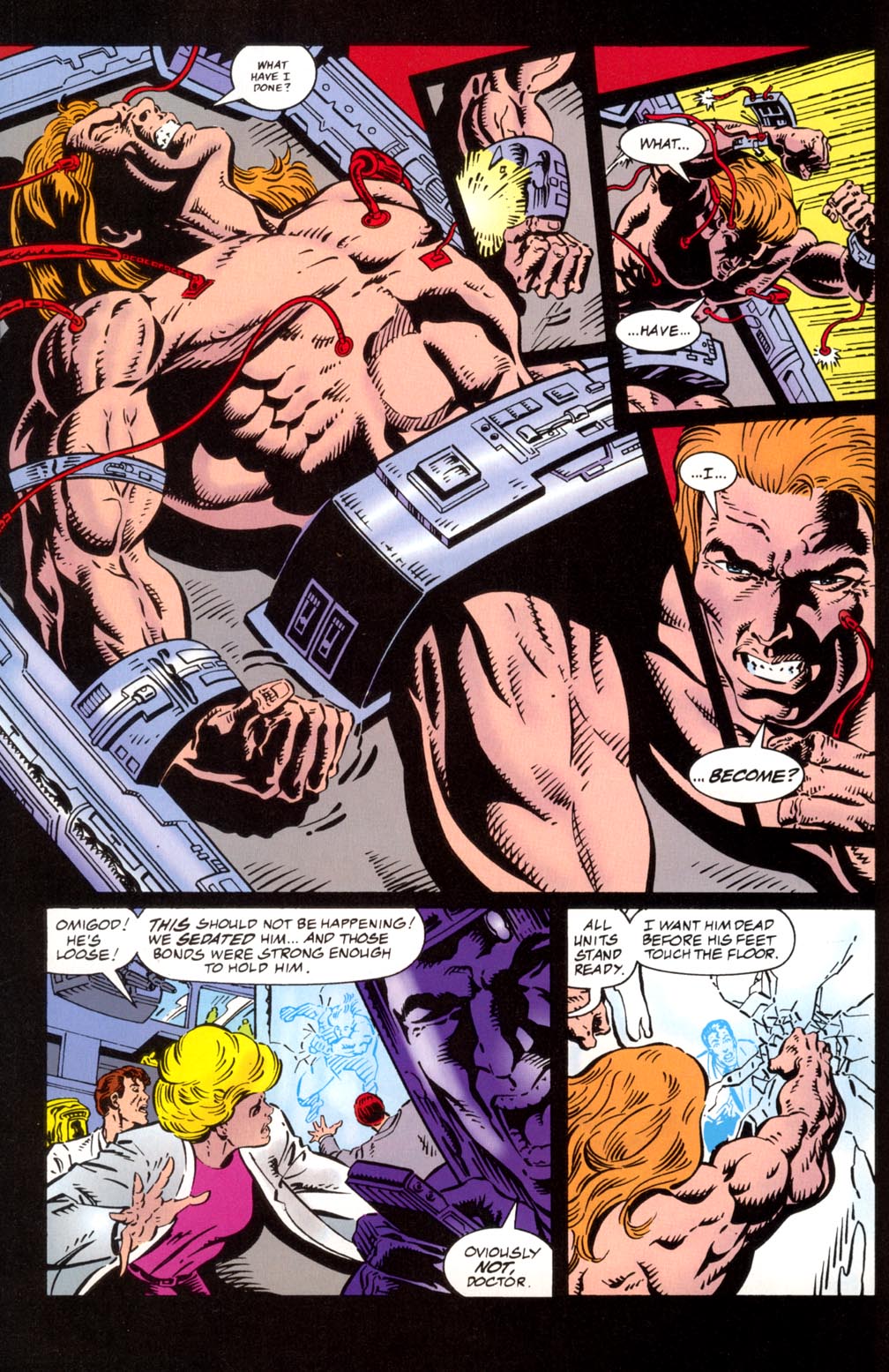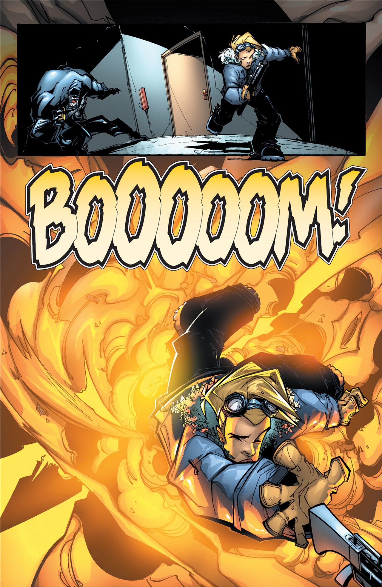 - Busts through another metal door