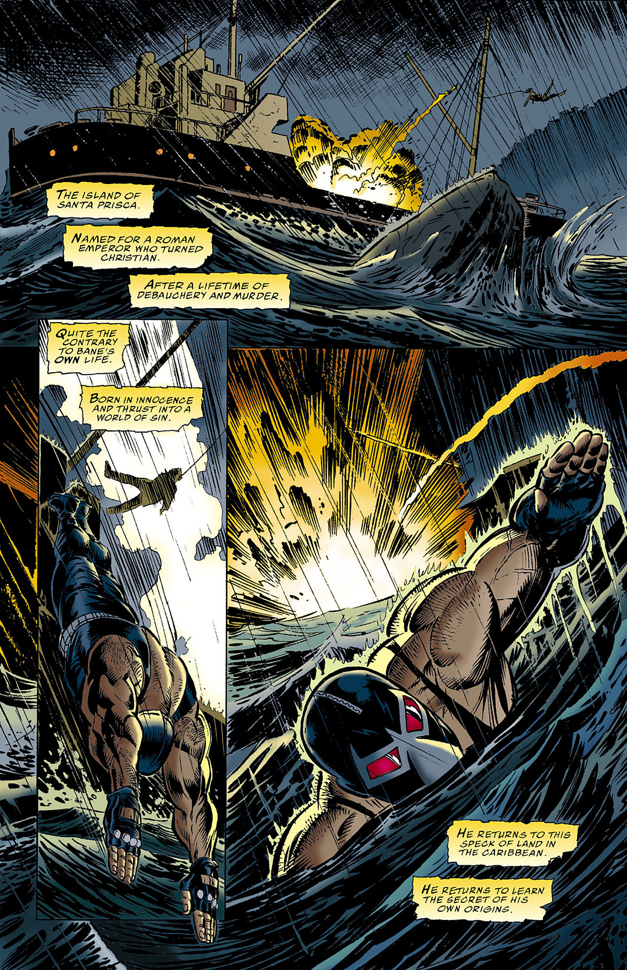 Bane found his already-peak physical abilities augmented to superhuman levels thanks to the Venom. While he now had to take a dose every 12 hours…well, it wasn’t like he had any choice to begin with, so he might as well focus on the benefits. And focus on them, Bane did. Gathering up his most loyal compatriots, Bane killed the warden and finally escaped from Peña Duro. For the first time in his life, he was free.