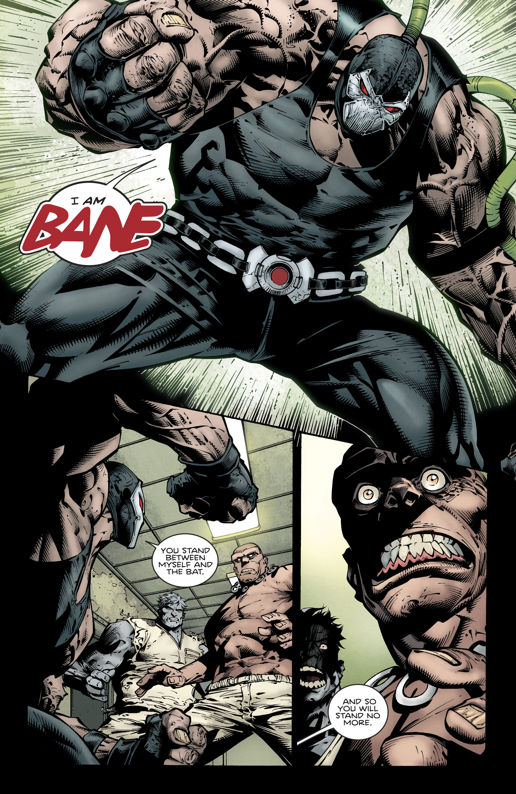 Over the years, Bane rose up to become the “King of Peña Duro,” a man who commanded more fear and respect from the prisoners than the actual warden did. Even ten years of solitary confinement, sentenced by the aforementioned warden as an attempt to regain authority, only served to strengthen both Bane and his legend. All other options extinguished, the prison controllers drafted Bane into becoming a guinea pig for a strange drug known only as Venom. Every single man before had died due to taking it, so surely Bane would follow, yes?