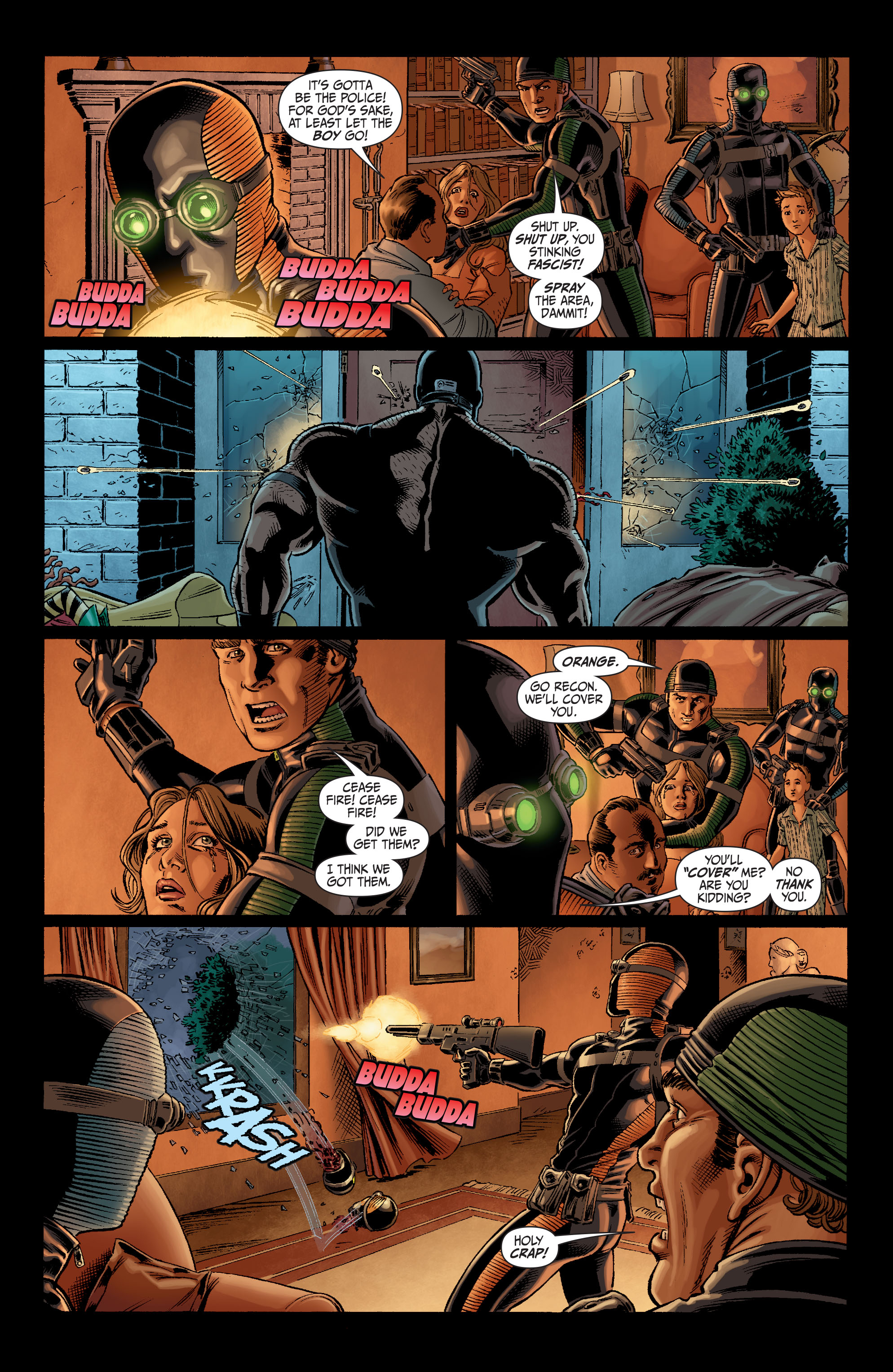 - Wades through a barrage of gunfire with minimal bullet wounds