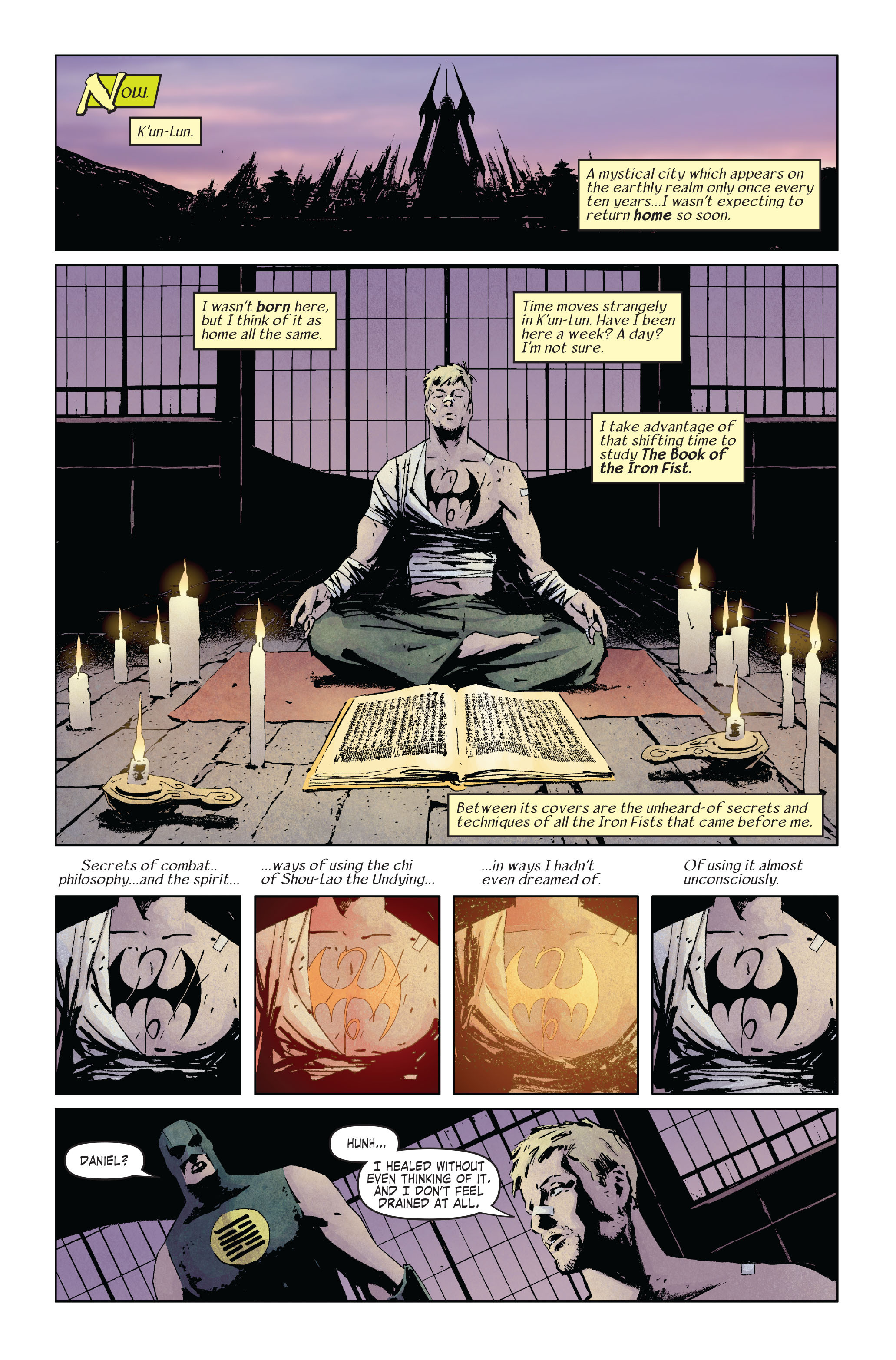 Iron Fist is a master of meditation and relaxation techniques. He can use this to enter a state of peace or to ignore pain and even slow his heart rate. He was able to meditate for three days straight once before he couldn’t feel his toes. He’s even learned to meditate in such a manner that others are affected as well.