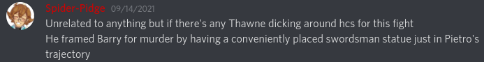 To get a bit sentimental, I’ll be honest and say I wasn’t really excited for this fight at first when it was announced. Aside from Bruce dying a third time (agony), one of my favorite characters and villains in fiction likely getting the short end of the stick because of how cool Thawne is for an entire waiting period where I’m expecting dozens upon dozens of memes and jabs at Black dying didn’t sound ideal. But I’m really happy that’s not the case. This waiting period was actually pretty nice, and I’m actually super pumped for this fight now, especially after doing pretty much a majority of Black’s section, which was probably the most fun I’ve ever had on any of these blogs. And I have my buds and pretty much everyone who worked on this blog to thank for making me excited for this now. Js, Pidge, Momo, Akhil, Robin, Joshki, Ani, Random, everyone: you all rule for making this wait time actually fun.