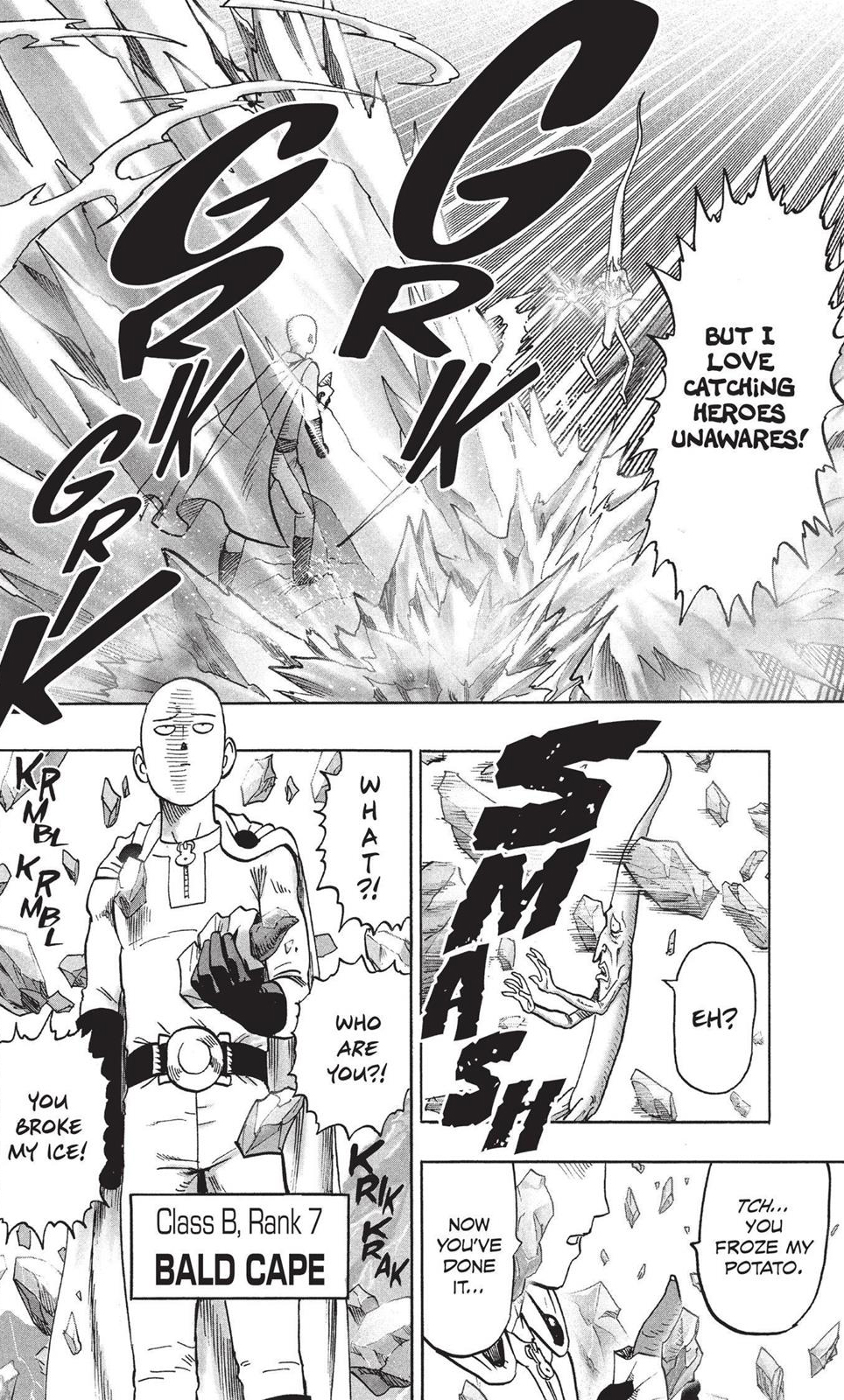 As for the “gag character” argument, the One-Punch Man manga isn’t actually a gag manga at all, being more satirical in nature. Saitama cannot be compared to someone like Arale, for example, whose world and story are completely centered on comedy. He can have silly and funny moments and be portrayed as a less serious character when compared to others like Genos, but that does not make him a “gag character”.