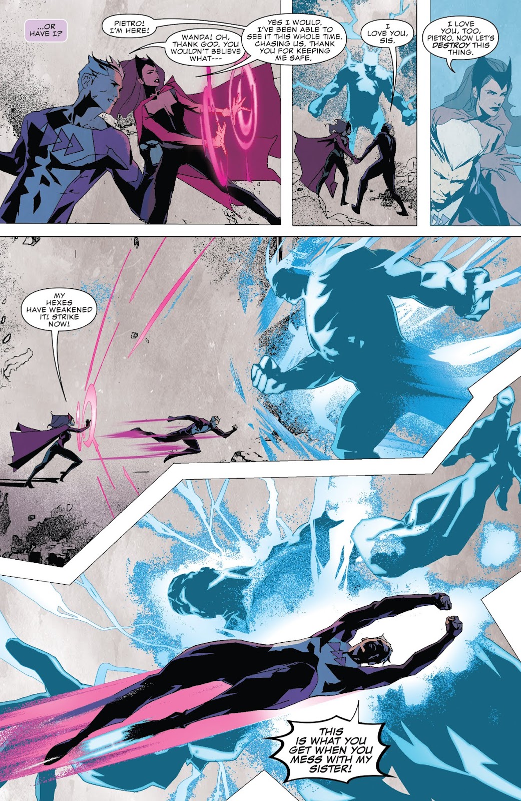Wanda removed nearly all of mutantkind from existence on M-Day, totally reshaping reality, completely changing it from what it was before. However, despite these difficulties and trials, she would ultimately succeed in overcoming her struggles. Reality was restored, she had new children, and she eventually conquered her archenemy Chthon once and for all. Wanda Maximoff now stands stronger than she ever was before, and ready to face any enemy who challenges her and the world she protects. It matters not how much magic her enemies have; the odds are never too low for the Scarlet Witch to overcome.