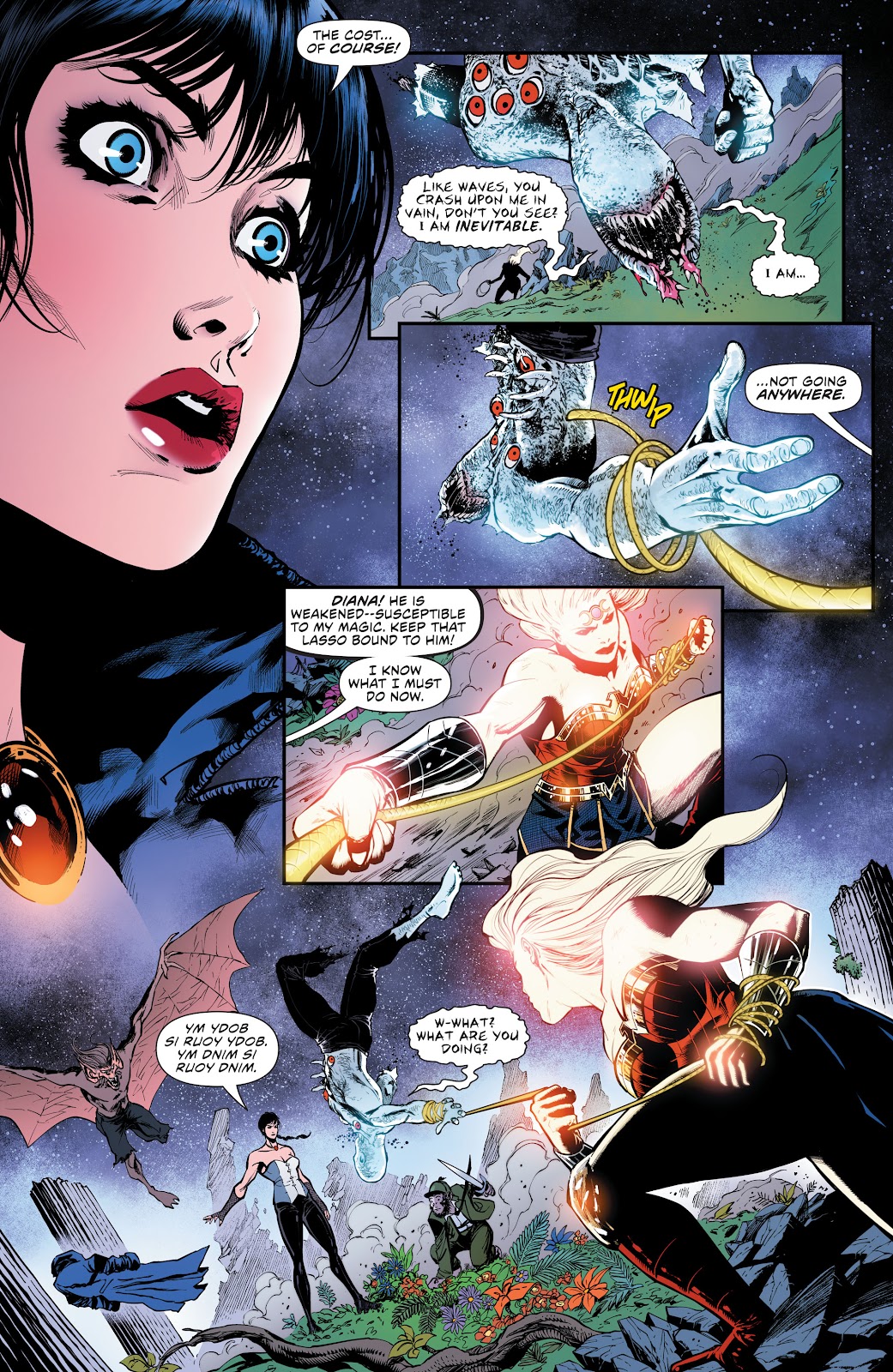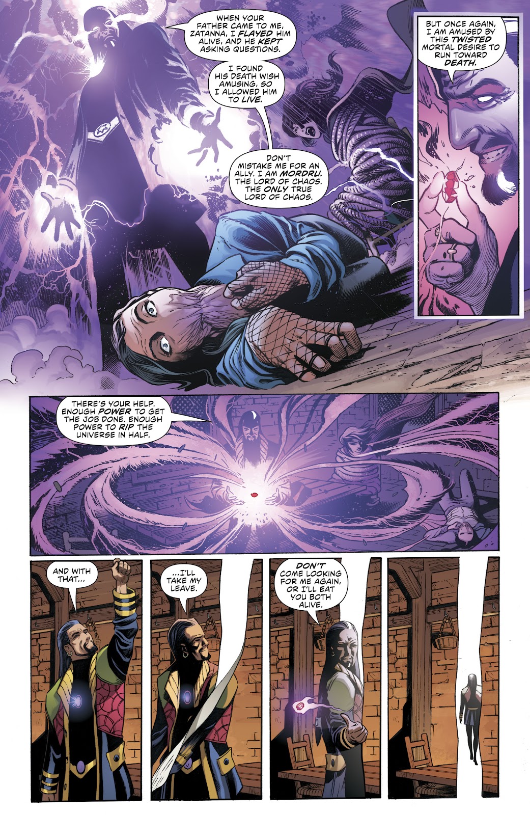 Wonder Woman used the Ruby of Life (amplified by Mordru’s power) to make Zatanna and herself Chaos Lords. Chaos Lords are capable of using chaotic magic. If you’re wondering what chaotic magic is, it’s the action of forcing the universe to do what you want instead of merely requesting (as orderly magic would). She can use this magic outside of the Ruby of Life, however, she does not due to a promise to Zatara. As a Chaos Lord, Zatanna is capable of shattering the fundamental rules of reality, as well as tearing magic apart.