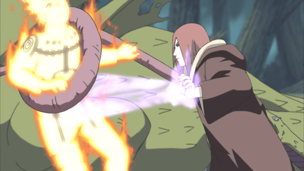 The receivers can be used to transmit the user’s chakra, and the user can change the frequency of their chakra to prevent people from using the receivers to trace them. By stabbing someone with a chakra receiver, a Rinnegan user can transmit their own chakra to disrupt the opponent’s chakra and throw them off their movement. Stabbing an opponent with multiple chakra receivers can immobilize them, and the Rinnegan user can potentially control their target’s movements if close, unless the target’s chakra is powerful enough to resist. Lastly, a Rinnegan user can implant these chakra receivers into six corpses that they can reanimate and control with their chakra. Removing the receivers from the corpses undoes their movement.