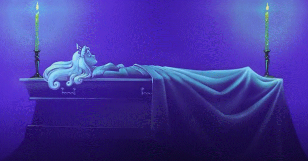 “Listen well, all of you! The princess shall indeed grow in grace and beauty, beloved by all who adore her. But, before the sun sets on her sixteenth birthday, she shall prick her finger on the spindle of a spinning wheel… And die!”