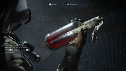 When thrown, this fiery cocktail creates a burst of fire around where it breaks. Perfect for burning zombies alive – or particularly unfortunate humans.