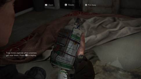 A bomb that Ellie can craft and then plant, obliterating targets that wander into its blast radius.
