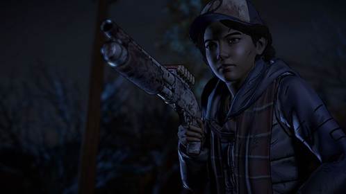 Generally, Clementine’s preferred shotgun is the 12-gauge Remington 870 Police Magnum. Like all shotguns, it fires a short-ranged but powerful blast that can easily splatter zombie heads.