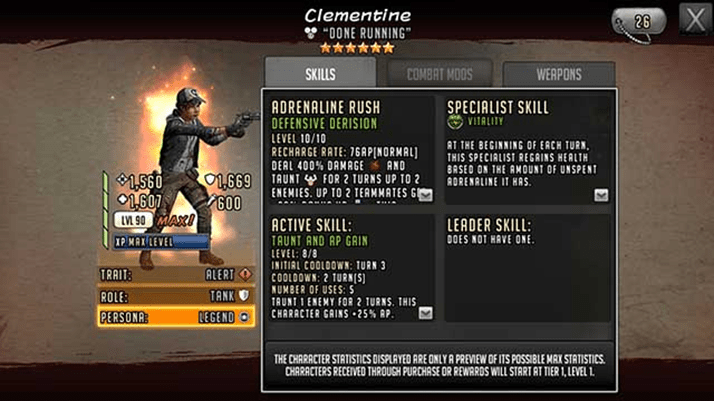 - AP/AP Bonus: Known as Action Points; when Clem gains these, it fills a bar called the Adrenaline Bar. Once this bar is full, it activates Clem’s Adrenaline Rush.