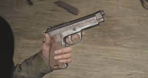 The Colt M1911A1 Pistol was the standard-issue sidearm for the United States Forces from 1911 to 1985. It is a semi-automatic pistol that has a 7-8 round system, and a firing range of 50 meters. Clem used this gun to kill a guard named Eddie.