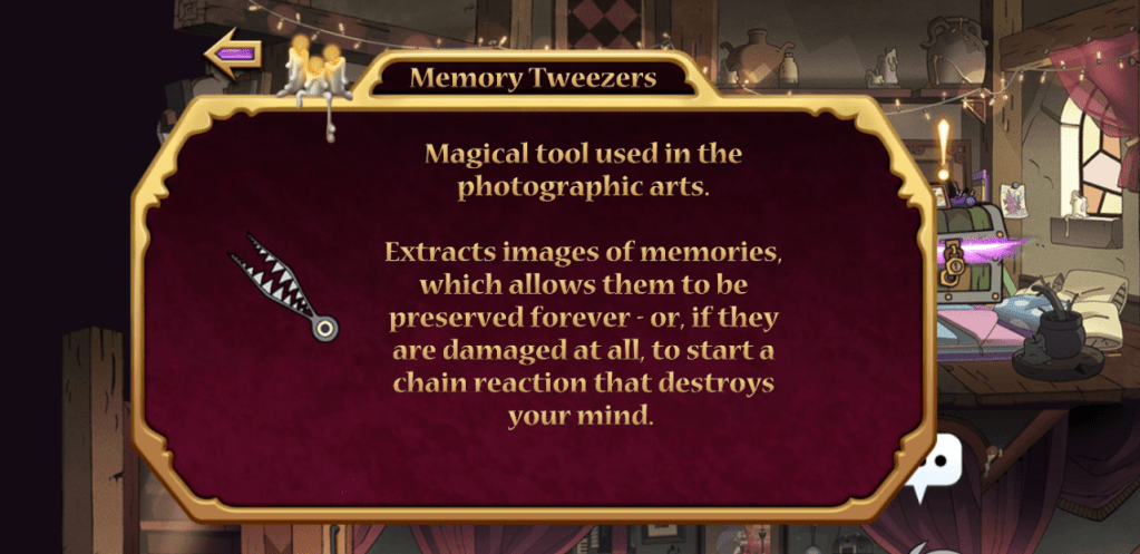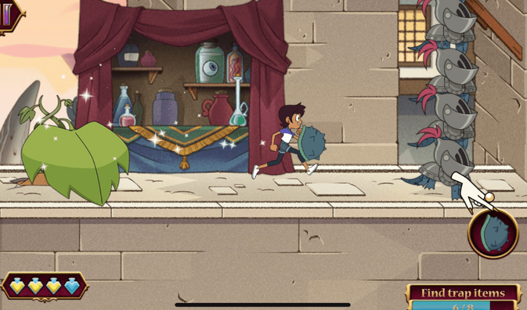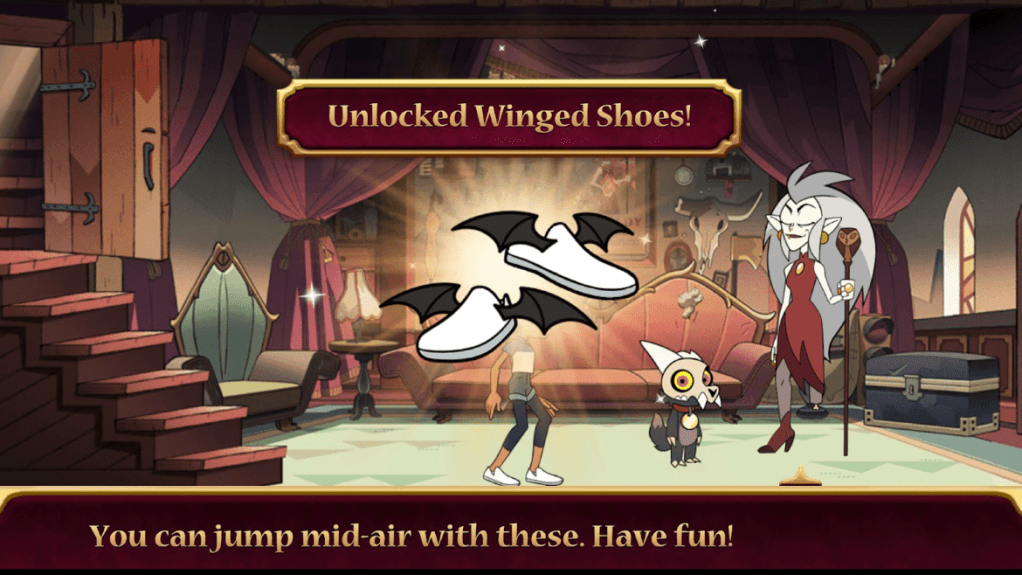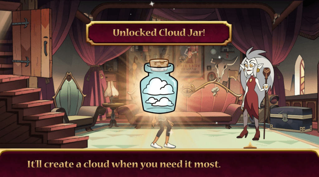 In The Owl House game Witch’s Apprentice the main goal of the levels is to go on various fetch quests and collect several items from the first season of the series that Luz would not normally be able to have access to. If given these however, Luz would have far more variety of ways to theoretically one shot Anne if given the chance, the notable ones would be the memory tweezers, which can remove memories from a person in the form of a picture and destroy their mind if it is destroyed, the green thumb gauntlet, which can create plant constructs as large as the biggest trees in the Isles, and the shrink spray bottle, which can shrink the target small enough to fit in the palm of Luz’s hand.