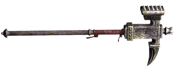 Taken from the tail of the Stone Dragon of Ash Lake (Which he doesn’t really mind, apparently), this massive weapon is capable of firing shockwaves that travel along surfaces, and even up walls.