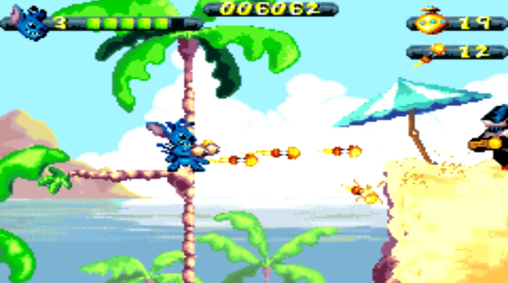 Also from the GBA game, Stitch is able to shoot missiles that home in on his opponents and explode on impact.