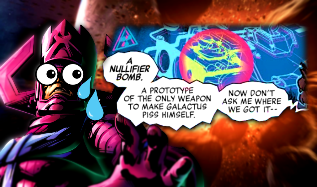 The Nullifier bomb is a prototype detonation device that R.R. claims even the world-consuming Galactus would have to be weary of… in more crude terms.
