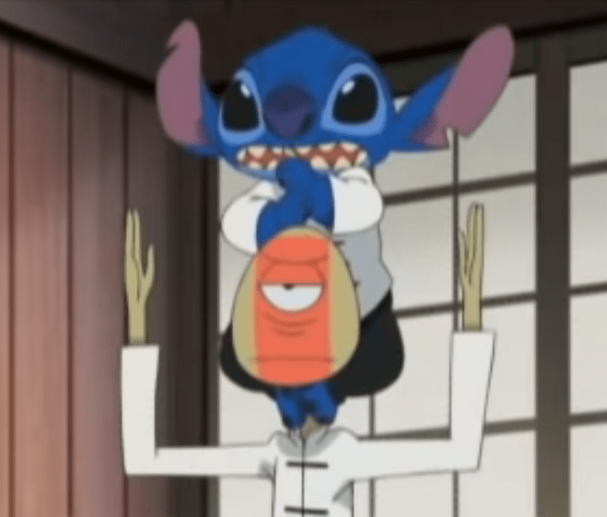 Stitch also has a remarkable list of accomplishments to list under his experience, from having successfully captured and rehabilitated all 624 (since 625 doesn’t count) of his cousins, all of which have drastically different abilities for Stitch to have to fight off which range from sound blasts, elasticity, cryokinesis, earthquakes, lava blasts, water blasts, having a hammer for a face, and so on, not even mentioning that he’s fought them when transmuted (i.e. when Hämsterviel amplified or changed their abilities to make them more dangerous to Stitch, such as giving Elastico transmutation or Splodeyhead stink bombs). Alongside having fought not one, not two, but three separate experiments who were designed to surpass Stitch and destroy him (627, Leroy, and Dark End). And that’s not even counting his experience fighting soldiers from feudal Japan, Yokai, mythological Chinese creatures, an evil version of himself from an alternate timeline, Cyber (000) and his robot army, the Galactic Federation, and Gantu the former Galactic Armada captain.