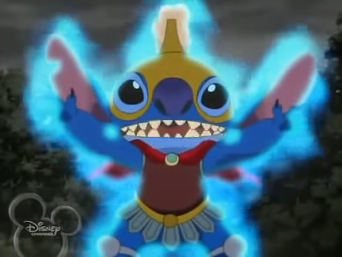 After drinking several cans, Stitch was supercharged with electricity, gaining new abilities and properties in the process. He begins glowing, is shocking to the touch, can activate an electrical aura, burping creates blasts large enough to destroy houses or shoot out bolts of lightning, and he was so filled with electrical energy that he was capable of powering an entire small town for a period of time (as well as release a massive blast of electricity across the town which short circuited the entire town and a spacecraft absorbing it’s electricity) and have enough electricity absorbed from him to power a bomb capable of destroying an entire island, and still be supercharged after the fact.