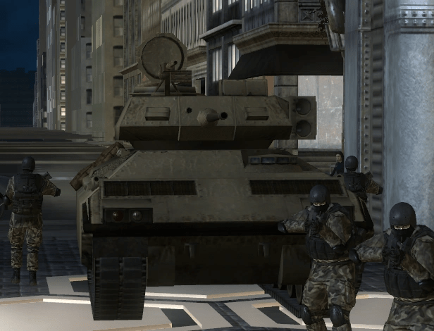 During the first outbreak, it featured a 7.62mm M240 Coaxial Machine gun, and a 12.7mm M2 Browning Machine gun in a secondary weapon station located above the commander’s hatch. During the Second Outbreak however, it was instead armed with a Gatling Gun mounted on the side of the turret as a secondary weapon.