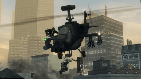 Now we are getting to the most powerful weapon in the history of Prototype. The Helicopters!!! They may seem fragile but the auto aim plus high damage of rockets allows them to destroy buildings, tanks and enemies in seconds. This single-rotor AH-64 Apache is equipped with a flexible mounted 30mm M230 Chain Gun, Hydra 70 general-purpose unguided 70 mm (2.75 in) rockets, and AGM 114 Hellfire anti-tank guided missiles. Empty, the Apache weighs nearly 11,000 lbs. It is manned by two crewmen, a pilot and a gunner. This doesn’t stop Alex from using both seats simultaneously however.