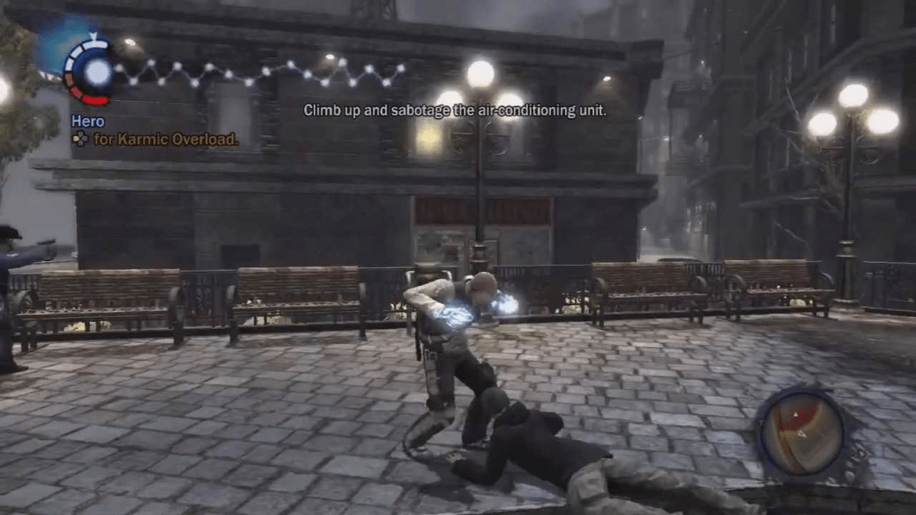 So a direct approach clearly isn’t the best method, but one of Alex’s bread and butter abilities is his shapeshifting allowing him to become a perfect replica of those he consumes, allowing for a possible stealth attack approach. Cole has two very obvious counters to this however. The easier counter is the radar pulse allowing Cole to detect enemies even while disguised and view their internals, while the inside of Alex is obviously a lot less clear on what goes on inside of him, it also allowing Cole to simply detect foes means that Alex’s disguises will be a lot less efficient. Or you could go the more ‘can’t see him, hit everywhere’ route with Ionic Freeze literally being stated to not hurt civilians, meaning even if this took place in a crowded area, it would only target Alex and force him out of hiding.
