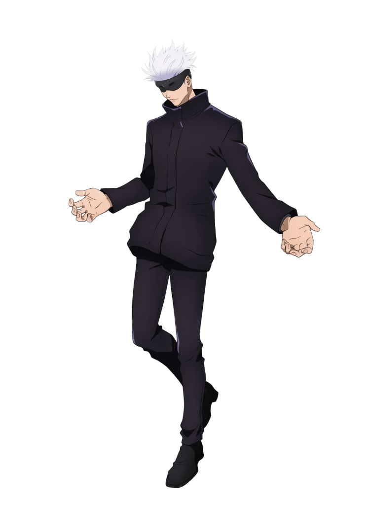 A blindfold that restricts the Six Eyes effects. It’s a necessity in his day to day life, seeing how if he were to output them 24/7, he would suffer great fatigue and mental strain, and thus by wearing the blindfold, he’s able to keep his cursed energy output stable every day. Plus thanks to his special Six Eyes he can still see with it on.