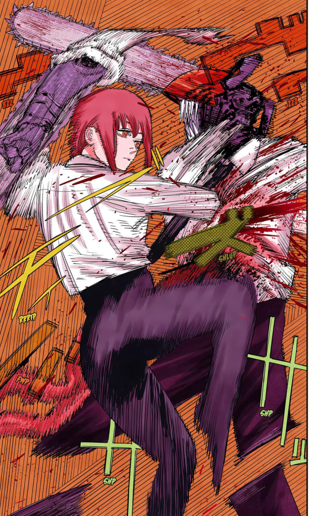 With the contract null and void, she unleashed the true Chainsaw Man, and reached the endgame of her goals. Surprisingly, when on the verge of success after having broken Denji mentally and Pochita physically, the duo were saved by the Blood Devil, Power, who helped them escape and bring Denji back to normal. After recuperating, Chainsaw Man battled Makima one last time, and it ended with her ripping out his heart a second time. Her plan complete, Makima closed her eyes and began to rest, until Denji slashed her chest open with a chainsaw, having tricked the Control Devil by turning Pochita into a duplicate of himself.