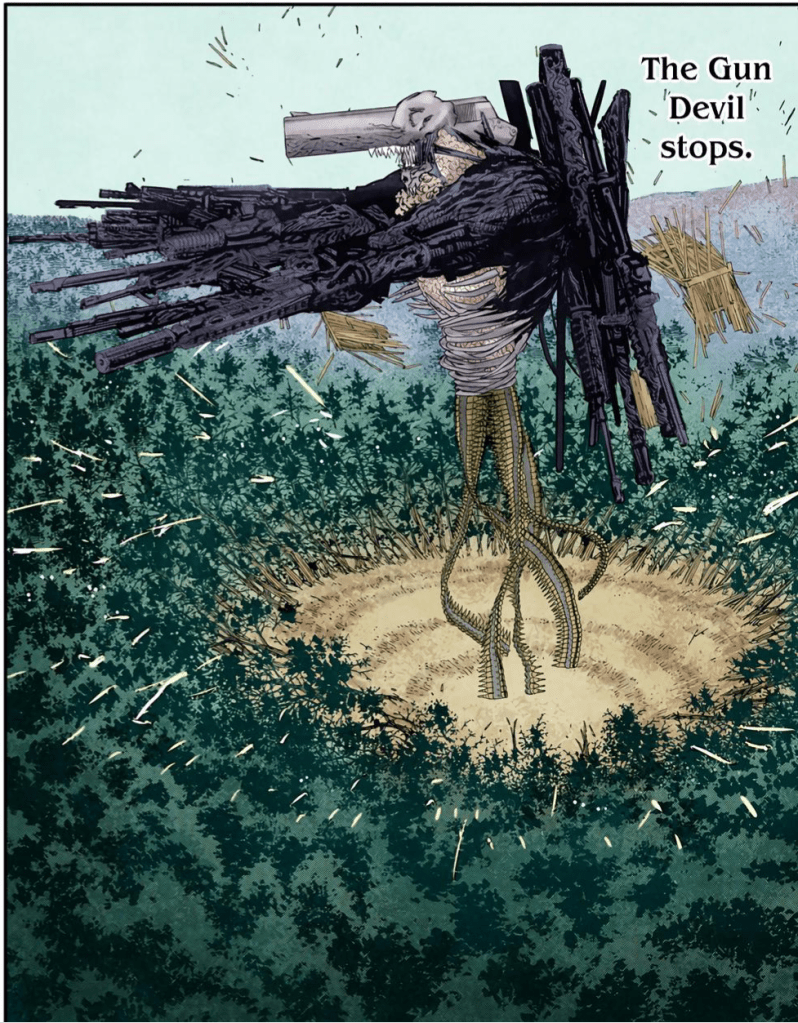 Gojo may have experience with fighting multiple opponents at once, but when he has, it has usually been against opponents he can easily shrug off, allowing him to focus on a specific target. But here, Makima has 3 other Devils besides herself that can match in stats, and add several more factors onto Gojo’s plate as it is. Such as, for example, the Gun Devils insane AOE and bullets traversing several kilometers in moments, thousands flying out at a time.