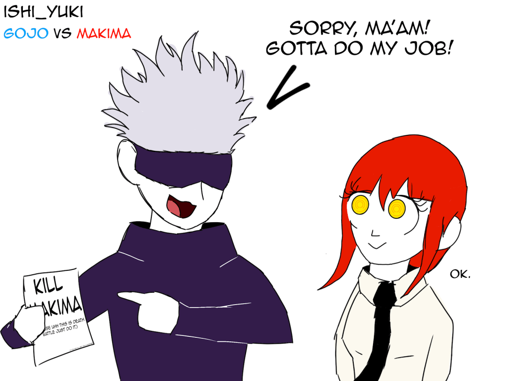 Overall, this is in no way an easy battle for Gojo. Makima has several good advantages and arguably the best win condition in the debate. However more times than not she cannot beat The Strongest. Gojo is definitely doing better in the stat trinity, obliterating Makima in terms of physicals and being able to keep up with her stronger abilities/summons. Speed is more of a toss up but Gojo should be at minimum comparable, and has the potential to be even faster with the Black Flash high-end, or completely blitz Makima if you buy into the FTL Sukuna feat. These combined mean that Gojo has a solid lead when it comes to stats, but as anyone familiar with this debate knows, it’s way more complex than just stats.