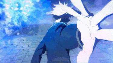 This application of Limitless focuses on using the output of Cursed Energy to attract things. By forcing the surrounding space to try and fill in a negative space made by Limitless, it creates a magnetic pull type effect that he can use on others (for a Shinra Tensei) or his surroundings (it can even be used to make a mini Chibaku Tensei). By using Blue to constrict the space around an opponent or objects, he can use it to crush the target or any object he wishes. Capitalizing off the pull in space, Gojo can use Blue to move at high speeds across short distances, appearing almost instantaneously (this would actually be fatal for anyone besides Gojo himself). He can also use it to enhance his punches by absorbing the space between the hit and the target right before impact.
