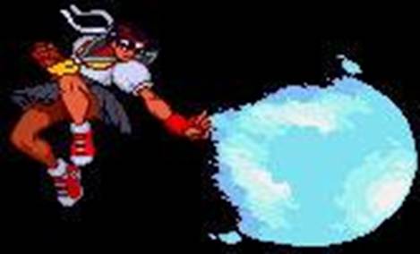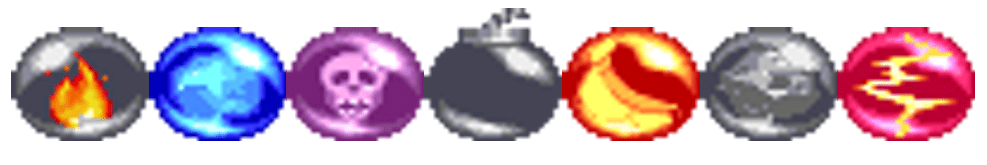 From Super Gem Fighter Mini Mix, Sakura can obtain these elemental orbs to throw at opponents. Each orb can burn the opponent, freeze them, poison them, she could throw a bomb, a banana orb where the opponent can slip and fall if landed, petrify them by turning them to stone, or shock the opponent.