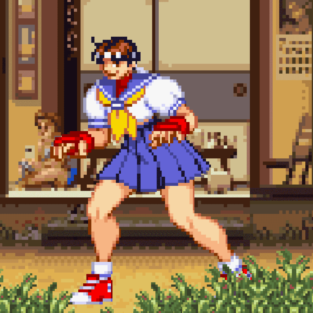 As time passed though, while she would still have that contagious spunk and energy that would make almost anyone happy to have her around, she did eventually graduate out of high school and attend university. Now working part time at an arcade, she wondered about the future and what to do about it. She didn’t have nearly as much free time as she did when she was younger to wander the world anymore, making her lose some of the passion she had for street fighting. Despite having some of this anxiety, she did bump into Ryu one more time. After a sparring session and a heart to heart talk about the future, she now knew what she wanted out of life. Whether it’s having the power to protect those she cares about or the strength to keep on fighting and carry on her legacy, Sakura would find a way to bloom once more.