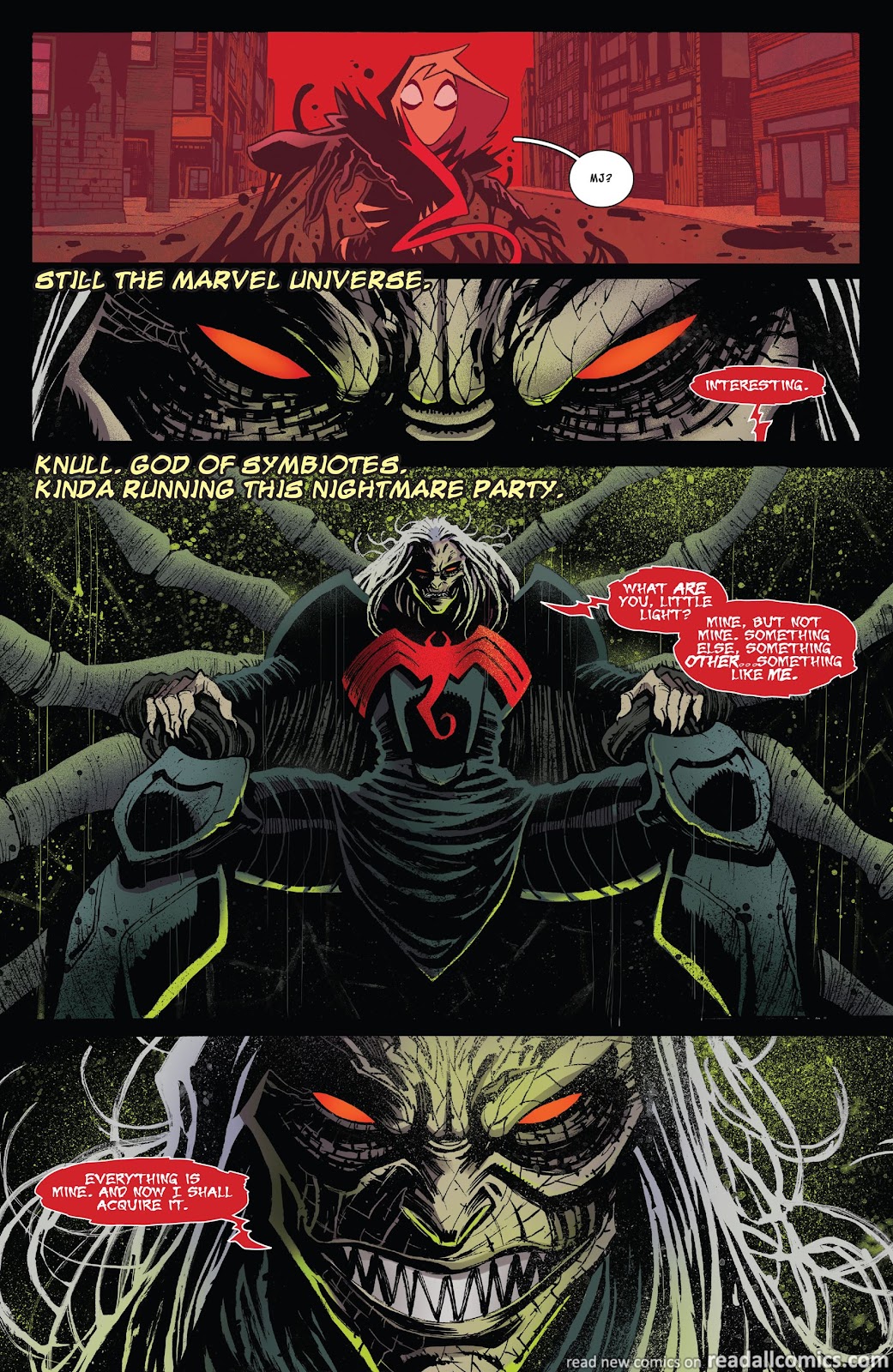 An interesting thing to note as well is how close Gwen’s symbiote is to an actual Klyntar. It is stated to be inorganic and not alive by Gwen, yet powerful Symbiotes can wrest control over bits of it from her. It even intrigued the God of Symbiotes, Knull, and compelled him to want to have it due to how similar it is to the Klyntar. But perhaps the most important takeaway here is that Gwen was able to pushback against Knull’s attempts to control her and her symbiote, showcasing her incredibly strong bond to it, described by Gwen in her own run as having found balance with it.