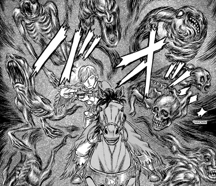 Those tempted by the alluring call of a behelit at the lowest point of their lives; Apostles are the transformed inhuman pawns of the God Hand. In exchange for a sacrifice that defines their very humanity, people who become Apostles transform into monstrous figures and gain superhuman abilities. While initially the strongest of the Apostles are threats beyond Serpico’s ability to handle, such as Nosferatu Zodd or Grunbeld, he has fought and defeated creatures that have put Guts on the backfoot and could not defeat easily without aid such as the Kelpie. And later on in the story as Serpico is stated to have changed from their initial meeting and makes Guts admit he’s someone he needs to take seriously in combat,