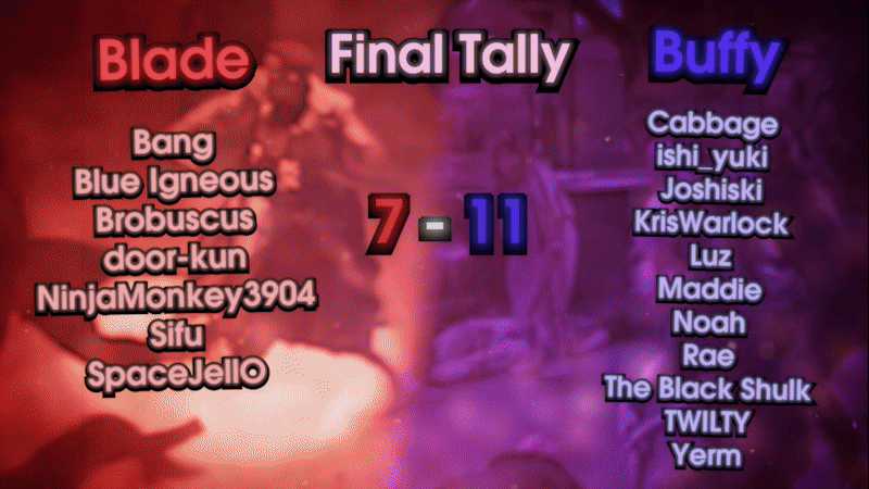 Buffy (11) – Cabbage, ishi_yuki, Joshski, KrisWarlock, Luz, Maddie, Noah, Rae, The Black Shulk, TWILTY, Yerm