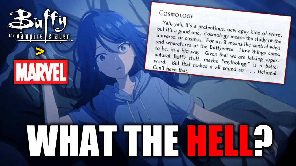 As for Buffy, we’ll be going through everything. The original show, the Angel spinoff show, all of her 500+ comics, her 128 novels, her 6 video games, the guidebooks, film, scripts, commentary tracks, website, and board game will all be included in our analysis. If you think we missed anything, the insane load of content is probably why.