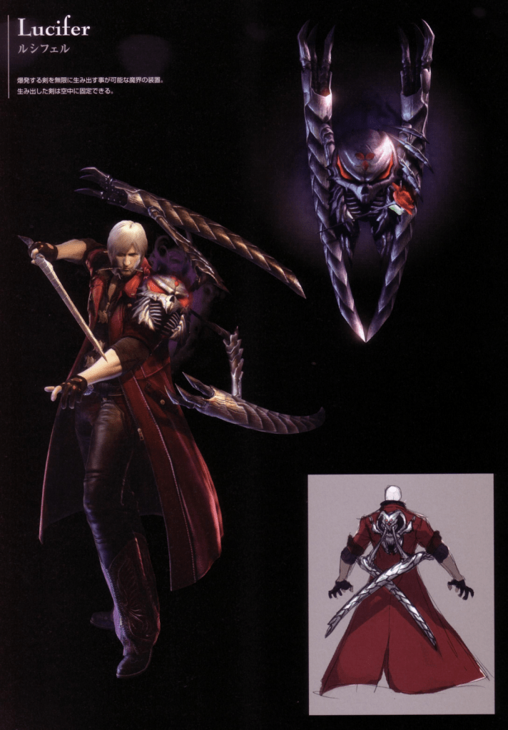 Lucifer is a Devil Arm that maintains endless explosive lightsaber-like swords that Dante can freely manipulate through positioning and placing them around the battlefield, to set up and dish out intense and crazy amounts of damage at once in one big and satisfying finish. There is no set limit to the number he can manifest, which he can detonate with a clap or the toss of a rose.