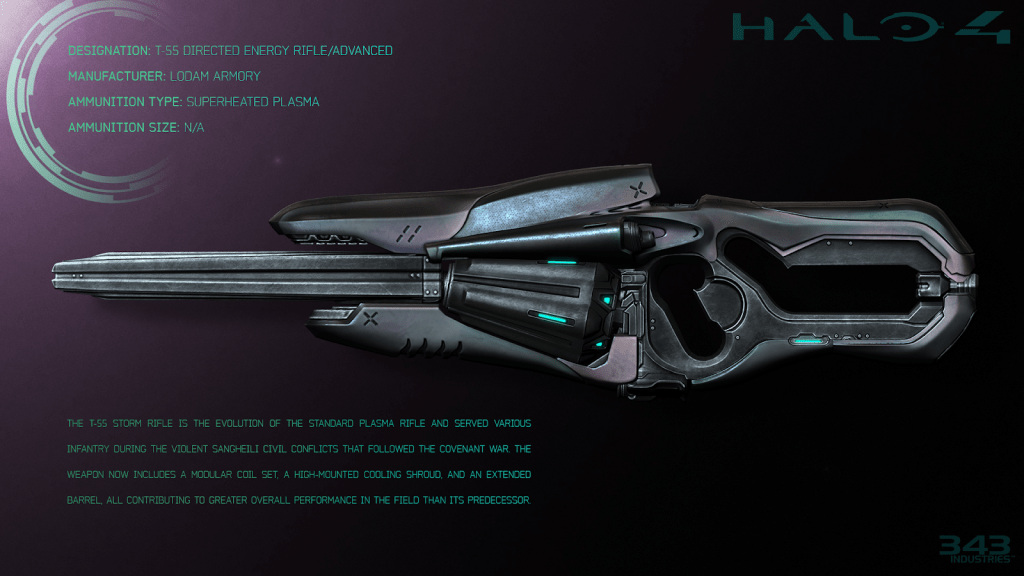 During the war for Chorus, Sarge and the other Reds and Blues received alien weapons and tech to even the odds against Charon’s forces. Sarge in particular was given the T-55 DER/A Storm Rifle, which fires superheated plasma at either automatic and semi-automatic rates. However, extended use can cause it to overheat, which will temporarily disable the gun and deplete its energy core.