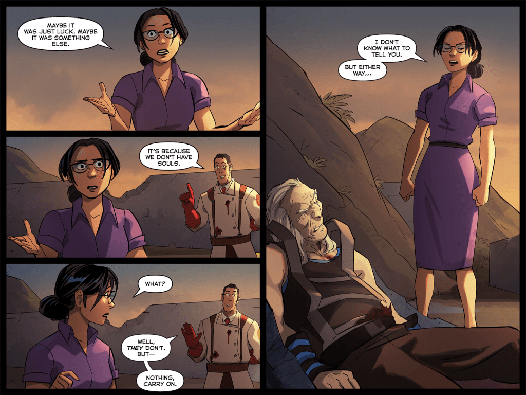 As far as overall media is concerned, this should be really straightforward. Team Fortress 2 especially is easy to understand, it’s just the game, the animated shorts, and the comics.