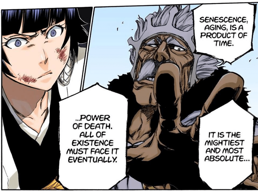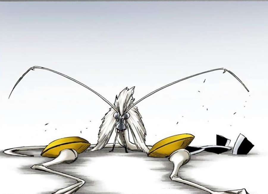 He also did something similar to Askin, one of the Schutzstaffel who was among Yhwach’s strongest Sternritter, even after Askin had been empowered by Yhwach’s Auswahlen, which redistributed the power of all the other Sternritter to the Schutzstaffel (translation: he oneshot one of the strongest of these guys when he had the power of a bunch of the other guys transferred to him).