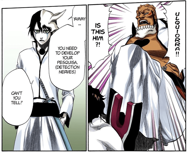 By utilizing Pesquisa, an Espada can evaluate an opponent’s strength and spiritual pressure with a glance. They can detect the precise location of presences with even a hint of spiritual pressure, in a similar manner to Shinigamis and Quincies.
