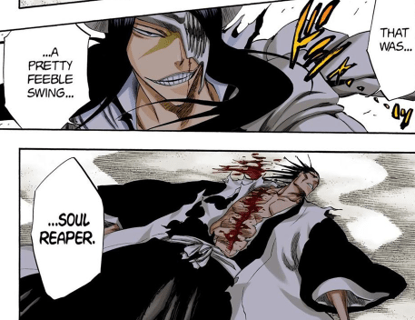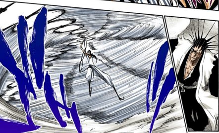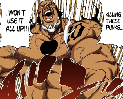 It should of course be noted however that Kenpachi subconsciously suppresses himself throughout the series, only achieving his full potential after his fight against Unohana much later down the line. Prior to that point, Kenpachi always only put forth the amount of power needed for any given opponent, and Nnoitra is no exception.