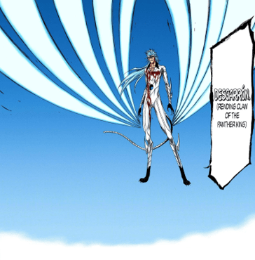 Of note, she does not seek to antagonize Grimmjow or establish herself as a competitor to his goal of becoming king, as she feels the two of them would end up fighting to the death, suggesting that the two are on a relative level capable of killing each other, with the indication being that Grimmjow is overall superior.