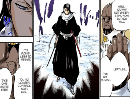 Regarding the resistances a standard Arrancar should possess, beings of high spiritual power can resist the soul crushing effects of another’s spiritual pressure when others cannot. They are also strong enough to withstand a Quincy’s power to break down the bonds holding their spiritual matter together, and should be able to resist the soul decay caused by other Hollows. Generally things such as shinten tranquilizers that can forcibly put people to sleep are also ineffective on beings with higher spiritual pressure. It’s been shown that powerful Reiatsu can resist gravity and spatial manipulation, with Ichigo being able to withstand Aizen’s Kuroshitsugi, as well as illusions to an extent, given that in Can’t Fear Your Own World, Tokinada’s version of Kyoka Suigetsu could be overcome through raw spiritual pressure.